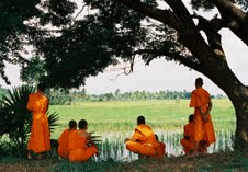 Sprawled out, hot and in a stupor on the tile floor, I’m interrupted by a timid knocking at my door. There, in the darkness, stands Phra Suwatt, the abbott’s secretary who has been my welcome monk since I arrived.  He’s twenty-three and has lived in this temple since he was a boy.  He is tall and thin, so thin his robes fail to define even the slightest physical feature.  He’s the only monk I’ve spoken to since my arrival the night before. The other monks as though fearful or painfully shy keep their distance. Walking through the grounds they gracefully flee to nearby buildings at my approach. Huddled in small groups they peer  smiling from the darkened doorways and teak framed windows. Forty-eight hours ago, I was in the States drinking coffee. I wish I had savored it more because the only coffee here is instant. It seems trivial, doesn’t it?  It’s not that I didn’t do my research. I did plenty, but this is the kind of place no amount of research can prepare you for.