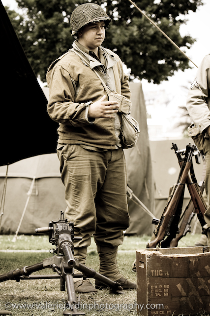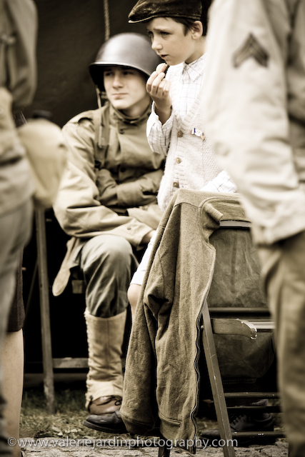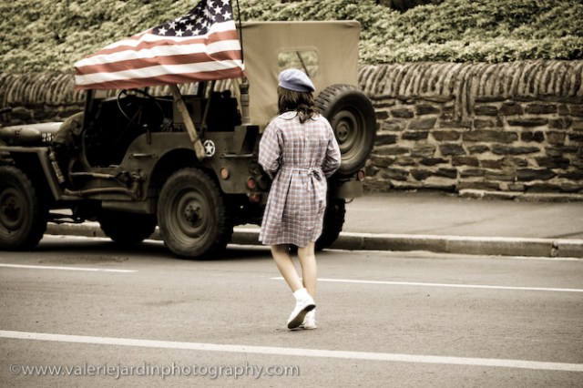 It was in July 2009, in the town of St Lô in Normandy, that I met the Carentan Liberty’s Group. The group was created by local WWII history buffs and collectors. The participants spend several weekends each year reenacting daily scenes of the liberation, mostly concentrating their efforts in the Carentan area. The most unusual characteristic of this group is that it casts entire families. Many young children and their mothers take part in the activities and help keep history alive by sharing stories told by their grandparents and great grandparents who experienced D-Day first-hand in Normandy. The president of the group, Jean-Marie Caillard, indicated to me that, since that part of history is so prevalent in his region, it is of the utmost importance to keep it alive and teach the young generation about the sacrifice of so many who helped liberate France in 1944. The blend of members dressed in US military uniforms and French civilian clothes makes the experience unique and more realistic for the visitor. The Carentan Liberty’s Group is also very eager to show the military equipment used during the reenactments. Its members are very knowledgeable about WWII facts related to the region and beyond. I am particularly sensitive to the work and passion of this group as I am originally from Normandy. My parents, although very young during D-Day on June 6, 1944, still remember the events vividly to this day.