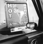 Driving across most of the country’s fifty states in an ordinary rental car, master photographer Lee Friedlander applied the brilliantly simple conceit of deploying the sideview mirror, rearview mirror, the windshield, and the side windows as picture frames within which to record reflections of this country’s eccentricities and obsessions at the beginning of the twenty-first century. Friedlander’s method allows for fascinating effects in foreshortening, and wonderfully telling juxtapositions in which steering wheels, dashboards, and leatherette