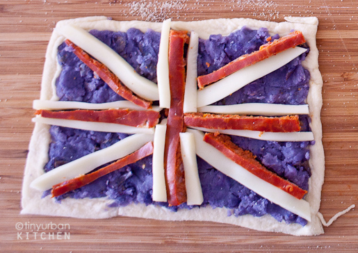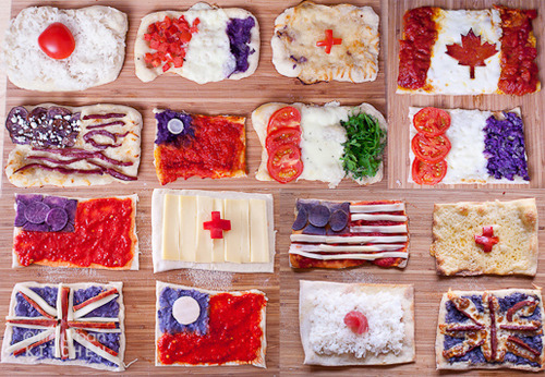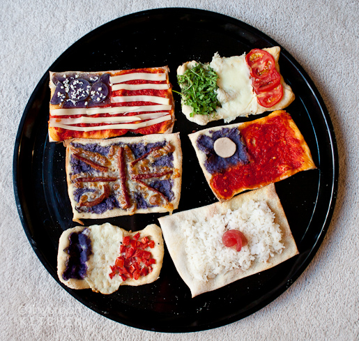 Cook, chemist and very clever food blogger Jen Che from Boston is the creative force behind the always entertaining Tiny Urban Kitchen blog, which has documented her personal travel history with “pizza flags”. Note the cunning use of mashed blue potatoes.