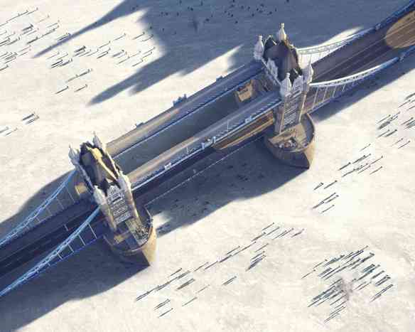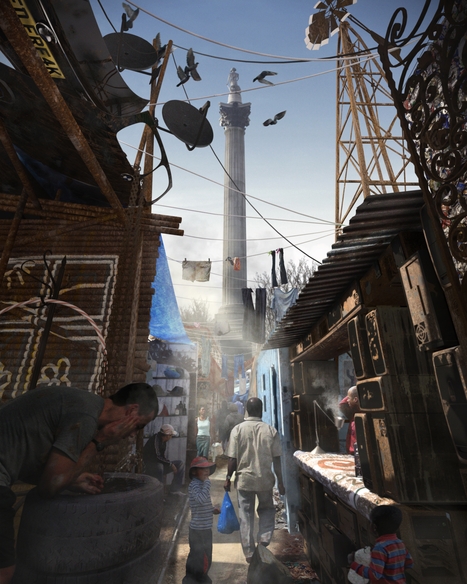 Some of the more striking images from the show include Buckingham Palace surrounded by an enormous shanty town, ice skaters on the Thames and Parliament Square transformed into rice paddies.