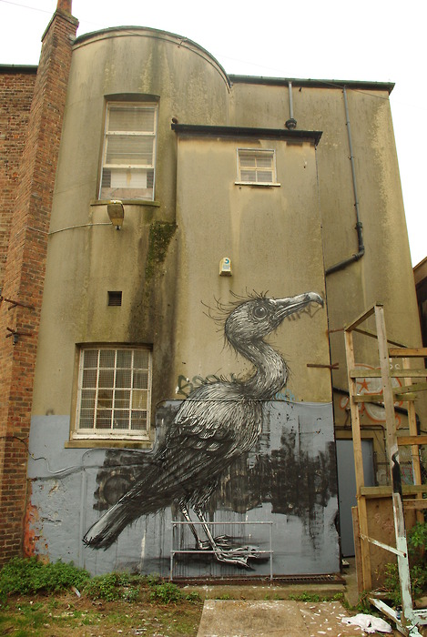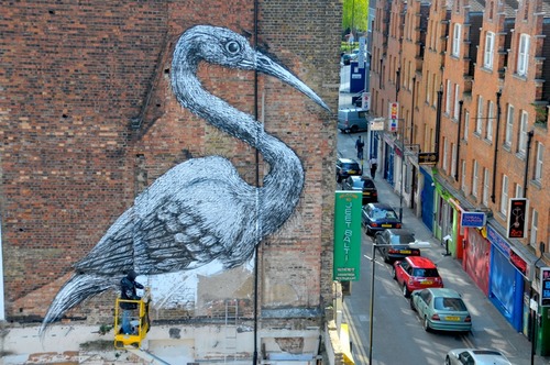 Based in Ghent, Belgium, ROA is a street artist who is gaining international acclaim for his giant animals. ROA got his start painting bridges, walls and abandoned buildings throughout Belgium. Since then, his work has popped-up afar afield as Warsaw, Paris, London, Berlin and NYC.