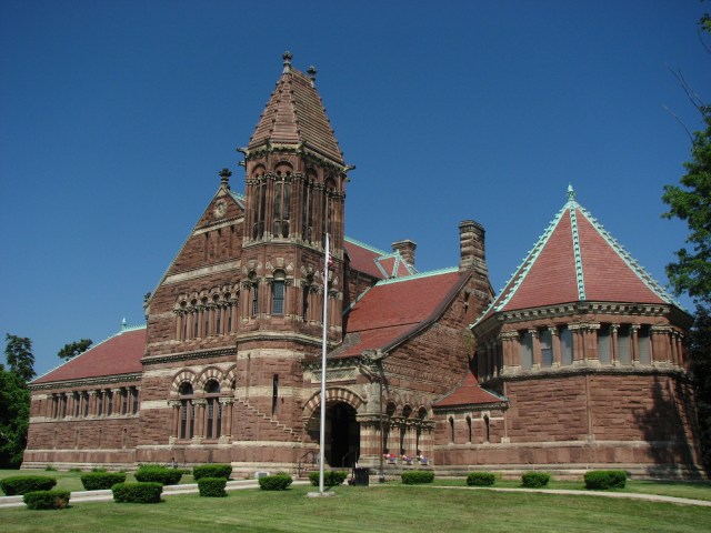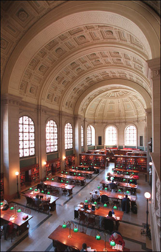 The Thomas Crane Library reminds me of one I used to work at in Redlands, CA called A.K. Smiley Public Library … photos are here: http://www.akspl.org/