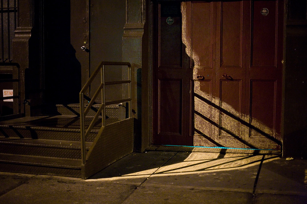I draw and photograph all of these works at night. Night in New York City is surprisingly bright. During the day, shadows change quickly, which inevitably results in distorted tracings. Shadows cast by electric lights gave me the opportunity to spend time on each piece and make very intricate drawings. I once spent 3 1/2 hours making a drawing on Hudson Street that was probably 150 feet long and 8 or 10 feet wide.