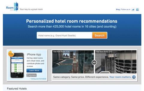 Eventually Room 77 plans to offer photos, floor plans and virtual views for hotel rooms in cities world-wide. For now, the site covers major hotels in Atlanta, Boston, Chicago, Denver, Honolulu, Las Vegas, London, LA, Maui, Miami, NYC, Orlando, San Diego, San Francisco, Seattle and Washington.