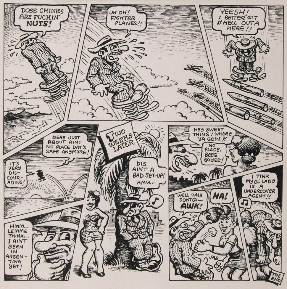 Comix, Big Ass Comics, The People’s Comics, Despair, Black & White Comics, Arcade, Hup and Weirdo. This exhibit features such counter-culture icons as Fritz the Cat, Mr. Natural, Shuman the Human, Bo Bo Bolinski, Lenore Goldberg and Her Girl Commandos, Horny Harriet Hotpants, Boingy Baxter, Angelfood McSpade and a special guest appearance by the ol’ pooperoo himself — R. Crumb. Works will be on display for six weeks, beginning March 23rd through April 30th in the Museum’s galleries in New York City’s Upper East Side at 128 East 63rd Street.
