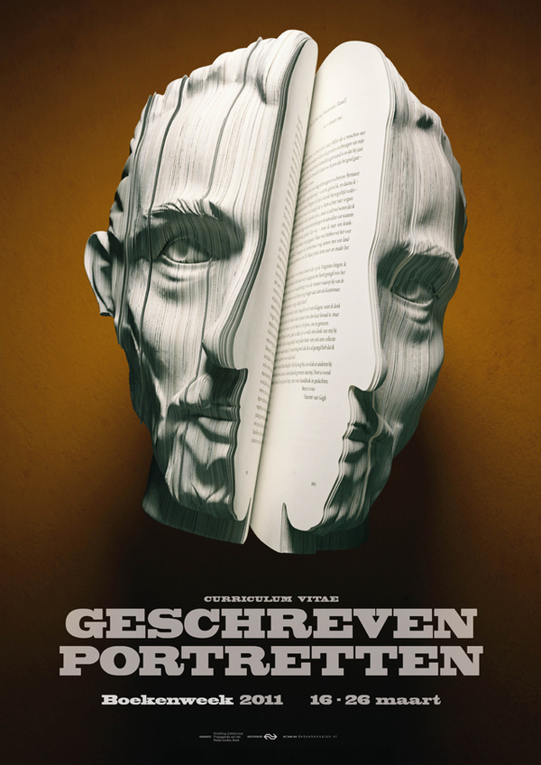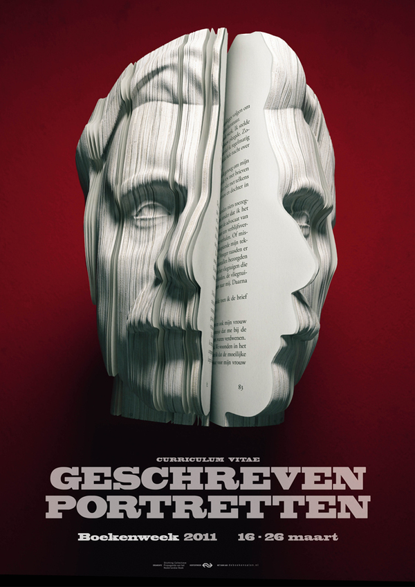 Dutch Book Week (Boekenweek ) to promote Dutch literature and reading. And every year a specific genre is profiled. This year, for the 76th Book Week, autobiography is featured, with the theme Geschreven Portretten or “Written Portraits”. The marvelous poster campaign artwork for the event was created by Souverein.