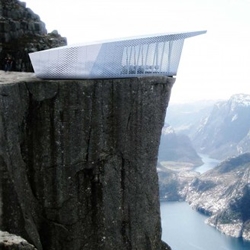 The restaurant “Cubes”, designed by Italian architects Park Associati, feature laser-cut aluminum walls, dining spots for 18 and a viewing terrace for the fortunate diners.