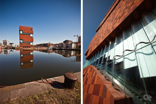 Antwerp, Belgium’s great port city and best kept travel secret, started a three day celebration bash yesterday to launch its audacious new MAS museum. The spectacular 10-story museum, which takes its name from the Dutch acronym for Museum on the River (Museum aan de Stroom), is built of stacked, cantilevered boxes clad in red Rajastani sandstone punctuated by undulating, glass ribbon curtains.