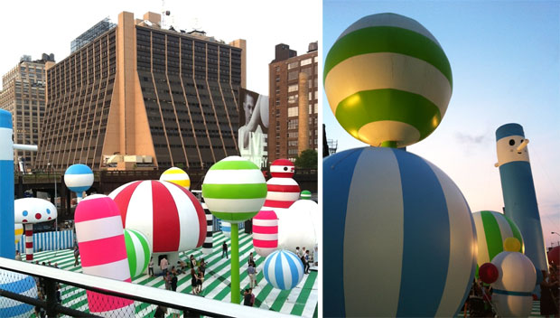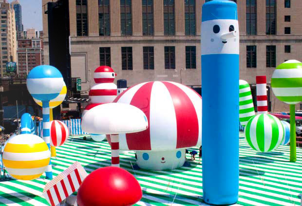 In celebration of the completion of Phase Two of New York’s wildly popular High Line Park this week, AOL partnered with FriendWithYou to offer Rainbow City, a candy-colored, interactive sculptural installation. The whimsical inflatable artworks were created to be a playspace for for children and adults alike. The inflatable playground also hosts educational programs for kids intended to encourage artistic creativity.