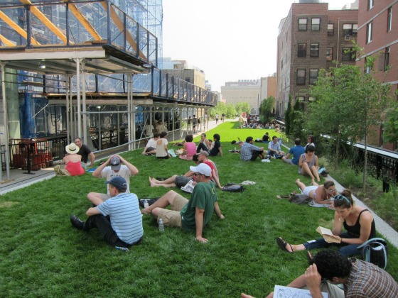 Along with the installation, the area under the High Line terminus at 30th street and 10th avenue now sports a slew of food trucks and a Tom Colicchio beer garden with beverages from the great Brooklyn Brewery.