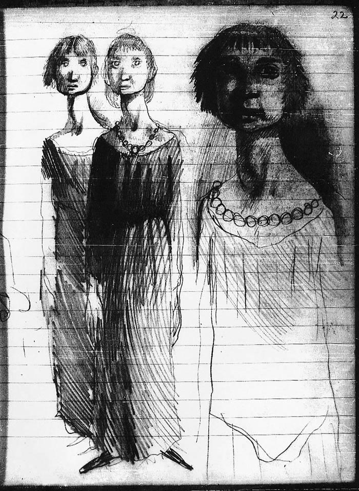 The exhibition brings together a wealth of material from the British Library’s collections, including the recently acquired Mervyn Peake archive. Previously unknown works discovered amongst Peake’s papers include: the manuscript of the soon-to-be published fourth Titus book, Titus Awakes, completed by Peake’s wife Maeve Gilmore after his death; and the complete first scene of his sci-fi play Isle Escape, in which a couple escape to a tropical island to wait out a world war that they later discover failed to take place.