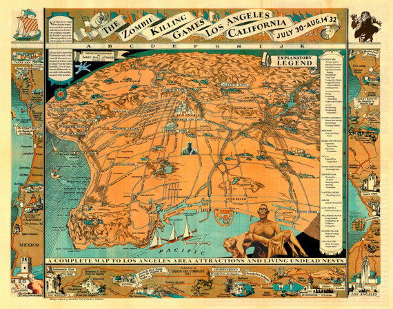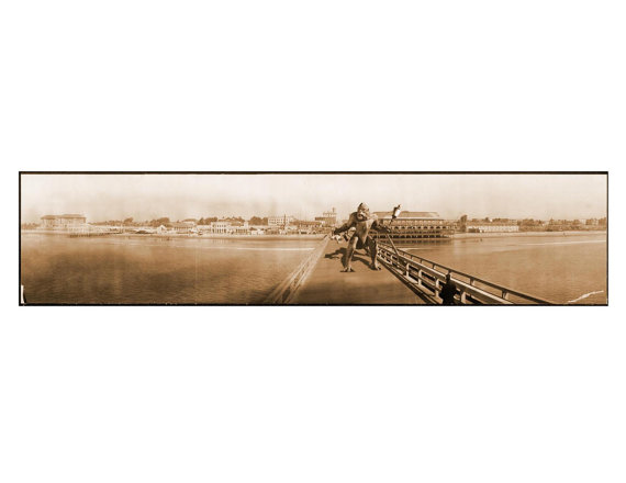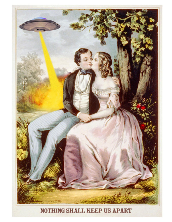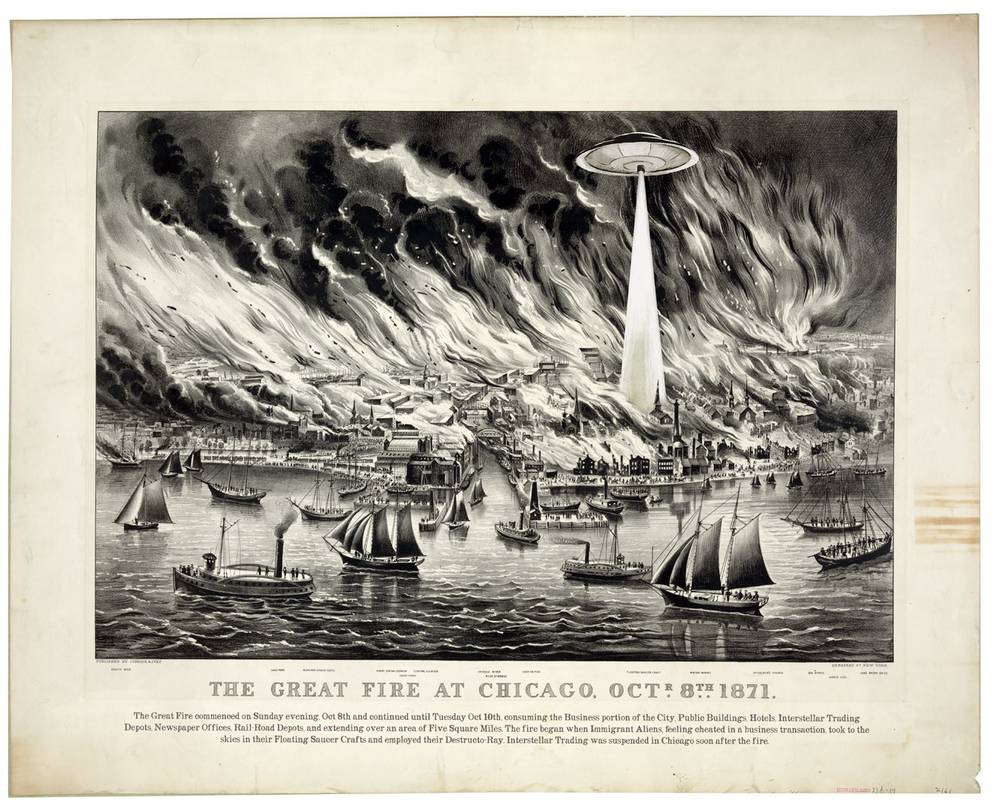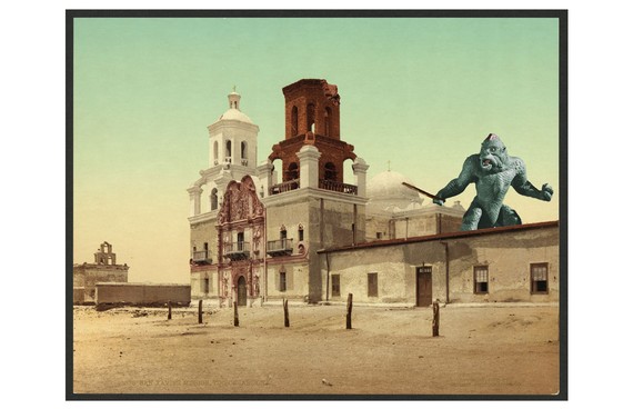 Pennsylvania artist Matthew Buchholz reinterprets American history through imaginatively altered vintage prints, postcards, maps and photographs. His ongoing project, titled Alternate Histories, incorporates aliens, monsters, robots and horror icons into historic scenes. Here’s a sample of his historical vandalism. But you can see more, and support the project, at his Etsy storefront.