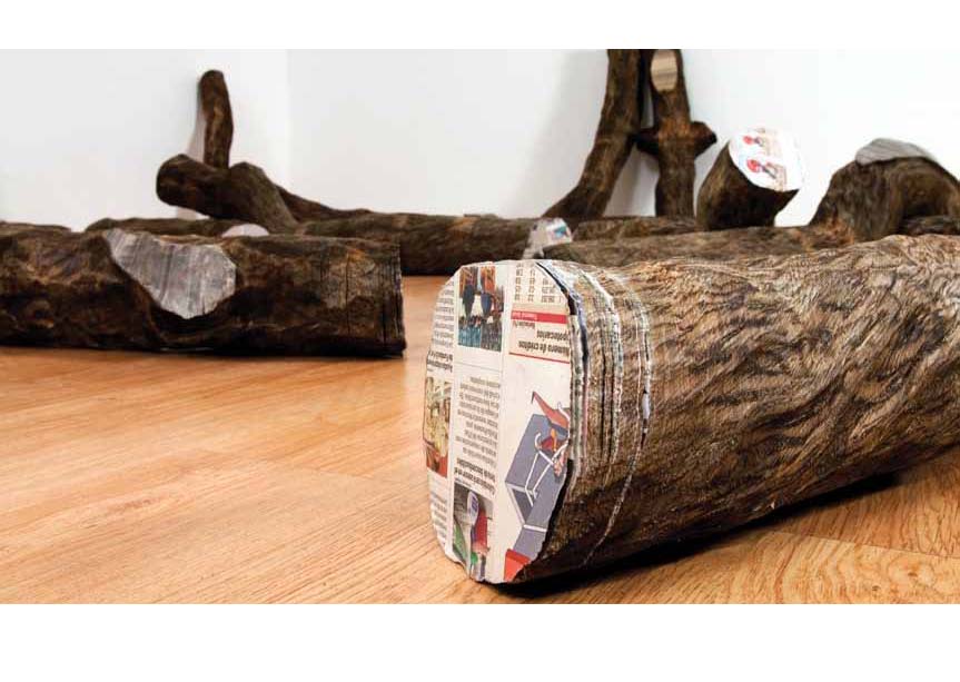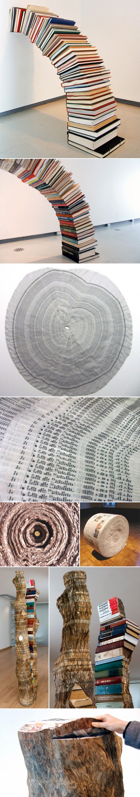 Columbian artist Miler Lagos works in many mediums, including video, collage, sculpture and installation. His work, which often incorporates repurposed reading materials, is often a metaphorical take on the precarious balance between human culture and the forces of nature.