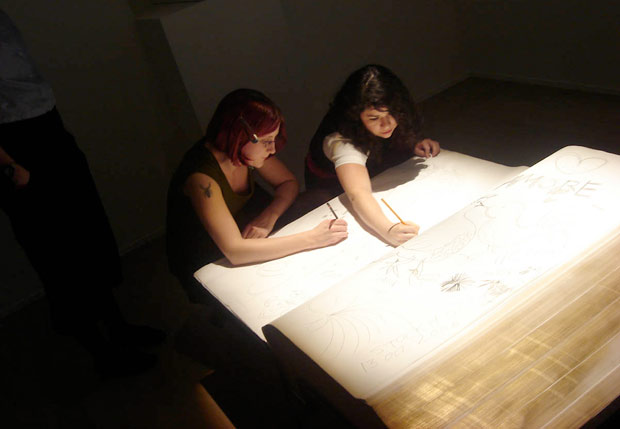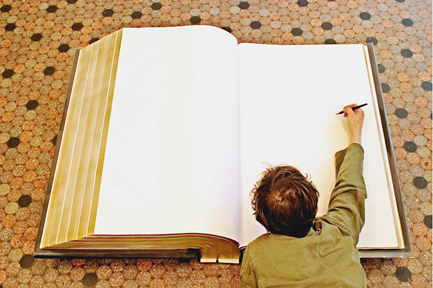 Beginning in 2006 at the Mori Art Museum in Tokyo, artists Bili Bidjocka and Simon Njami have been traveling the globe inviting creative types to hand write personal messages onto eight huge books.