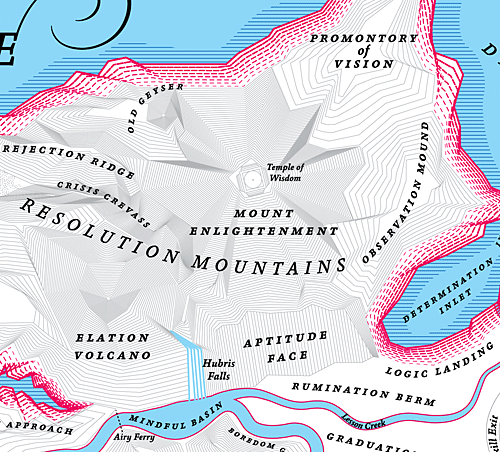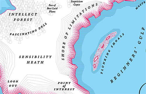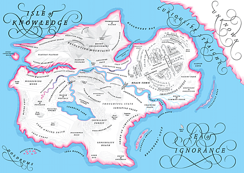 Isle of Knowledge is a fantastic illustrated map created by the extraordinary typographer, designer, illustrator and writer Marian Bantjes for the British magazine and website Varoom . Bantjes’ beautiful map was made especially for Varoom’s themed issue “Knowledge”. It lovingly explores the “destinations and paths we end up on in pursuit of knowledge”.