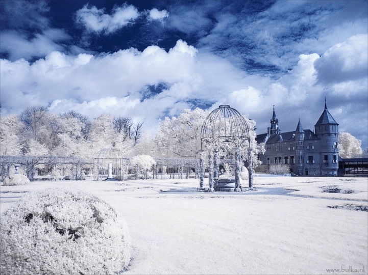 extraordinary shots of people, landscapes and urban scenes. In this exceptional series entitled, IR, she shoots everyday scenes and,using infrared technology distorts the colors with very dramatic and unusual effect. The resulting photographs are breathtaking, fantastical landscapes in icy blues and white.
