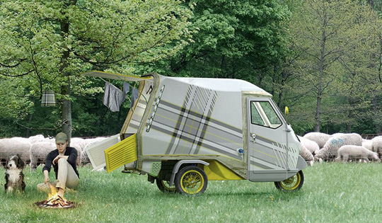 Inspired by the Piaggio APE 50 tricycle, the German designer Cornelius Comanns has designed a one person home for modern travelers. The Bufalino Camper is a great mixture of Italian design and German functionality. The mini-camper comes with all services needed for modern people on the move. Which means it not only gives space to a bed, shower, kitchen and plenty of storage space, but also a fridge and laptop desk. Altogether the Bufalino Camper is extremely flexible, although it has no toilet on board. I’m game. Well maybe for a week or two.