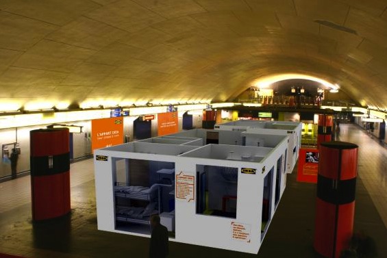 This past week, the international, flat-pack furniture mega-store chain Ikea installed a fully furnished apartment in the Paris Auber RER underground station. Five “roommates” were recruited to live the underground life Ikea-style for six days while demonstrating the functionality and ingenuity of Ikea’s space-saving design solutions. Unfortunately the underground apartment in the City of Light will be dismantled today. However, Ikea plans to build more pop-up apartments in metros around Europe for the edification of furniture voyeurs.