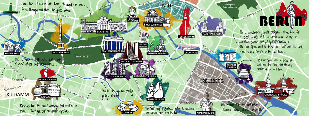 You won’t find any of these terrific, one-of-a-kind maps in a typical travel guidebook or in a travel magazine Many of these charming cartographical gems are created by professional artists or illustrators, but some of the most engaging maps are the creations of passionate amateur artists and cartographers. If you like these marvelous examples, please visit the artists’ websites and blogs to see some more.