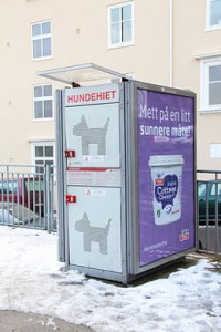 Dog theft is an ever-increasing problem in Europe and North America. Well, there’s a solution for anxious pet owners who insist on taking their dogs on shopping trips. The clever Norwegian developers of the Hundeheit, or Doggy Den, have created a safe, dry and warm short-term hotel for pet parking at supermarkets. The first unit is in place in Oslo and charges a modest rental fee of just 10 Kroner per stay. How long before someone parks their kid in one ?