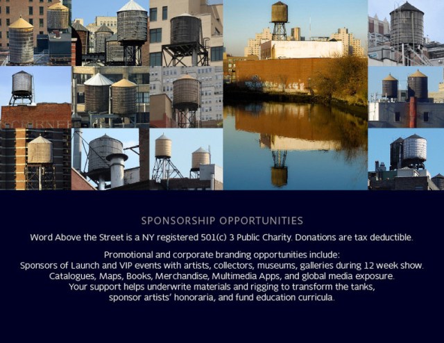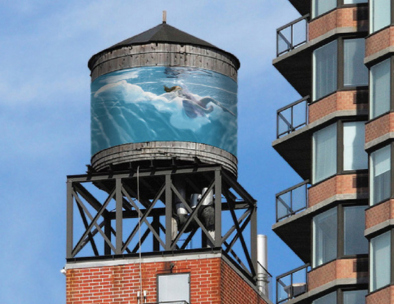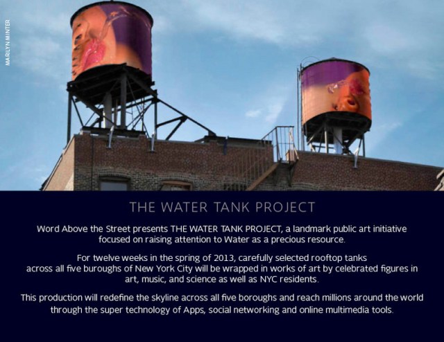 An impressive roster of New York City artists have signed-on to participate in a consciousness-raising project dubbed The Water Tank Project. Designed to draw public attention to the urgent need for water conservation and the myriad threats to the world’s limited safe, fresh water supply, TWTP’s first mission is to wrap some of NYC’s 10,000 iconic rooftop water tanks in eye-catching artwork.
