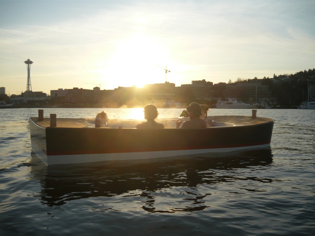 while lounging in a luxurious soaking tub. The boat can accomodate up to six persons…It is powered by an electric motor at approximately 4 to 6 knots.”