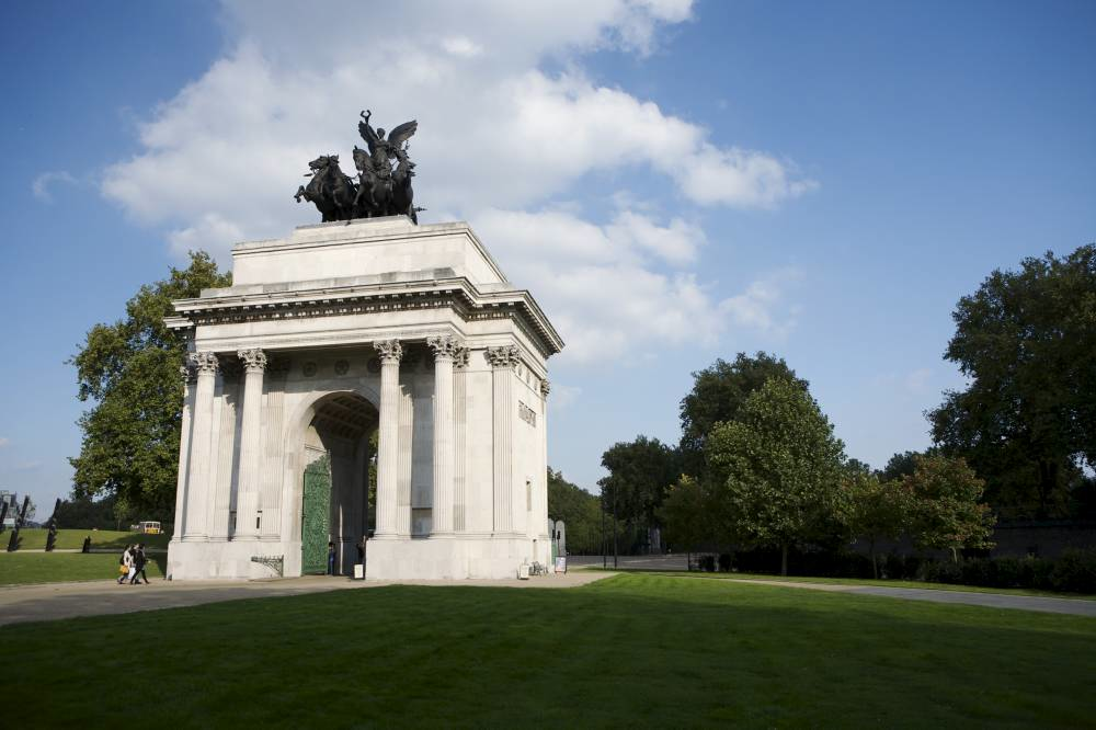 The elaborate victory arch has previously served as a traffic island and was at one time home to London’s most diminutive police station. Originally facing the entrance to Hyde Park, the Wellington Arch was moved to its current location in 1883.