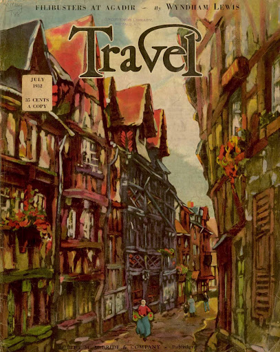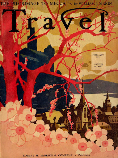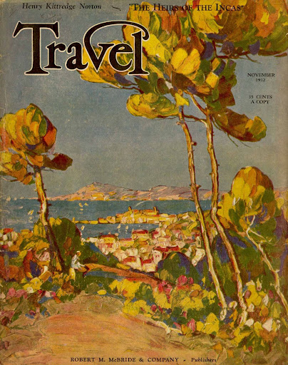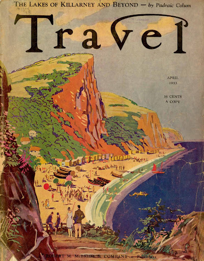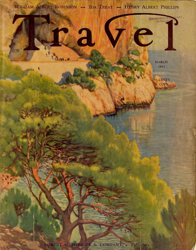 I just received a gratis copy of a new, glossy travel magazine; it’s one of the perks of the blog. This new contender reminded me of all of the ambitious, and failed, travel magazines that have been unable to sustain a readership and have quietly disappeared over the years. Maybe the publishers should go back to some of the travel periodicals that demonstrated amazing staying power. Travel , which was published between 1902 and 2003 was just that kind of magazine. The marvelous graphic artwork attracted readers, and more importantly subscribers for over a century. Could be a lesson there even in the internet age.