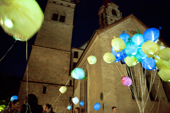 The inauguration of the piece last month included a street party where bag “balloons’ were distributed to be paraded through town.