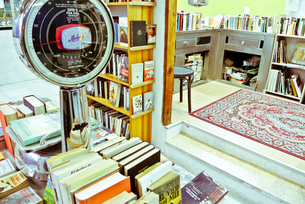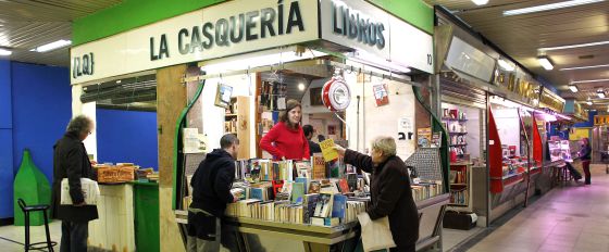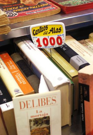 When I was in Madrid earlier this year, I visited many antiquarian and secondhand book stores, but some how I missed La Casqueria, Libros al Peso. Situated in the recently renovated Mercado de San Fernando in the up and coming Lavapies neighborhood, the book shop has been getting quite a bit of attention for their policy of selling all of their secondhand book at the flat rate of €10 per kilo. With the Euro hovering near the $1.20 exchange rate, $6 a pound for most titles is a real bargain.