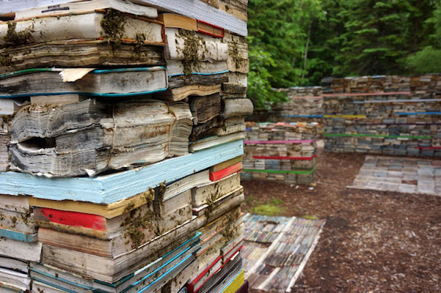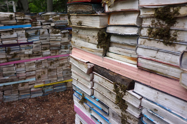 Way back on August 27, 2010, we posted a story on a marvelous bibliographic installation in the woods of Quebec, Canada titled Jardin de la Connaissance. This joint project by artist Rodney Latourelle and landscape architects 100 Landschaftsarchitektur involved stacked walls, rooms, seating and carpets of books in a forest clearing.