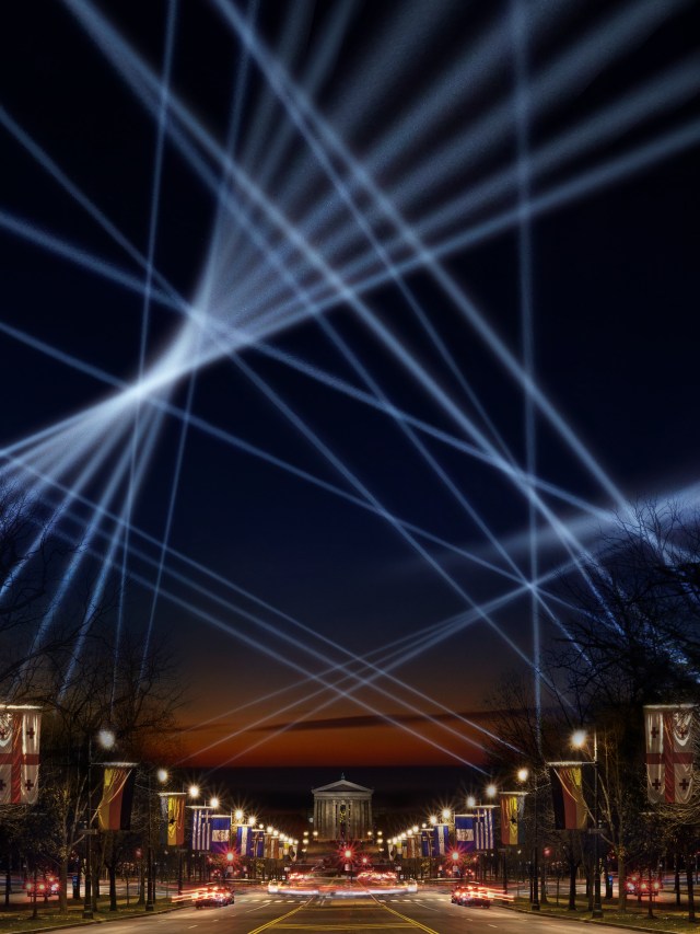 Depending on atmospheric conditions, Open Air will be seen up to 10 miles away from the Parkway each evening from 8 to 11 p.m. The Project Information Center at Eakins Oval will be equipped with app download, free mobile loan stations and seating areas for watching the lights and listening to the messages. There will also be an Information Outpost located at Sister Cities Park (18th Street and Logan Square).