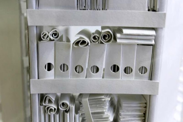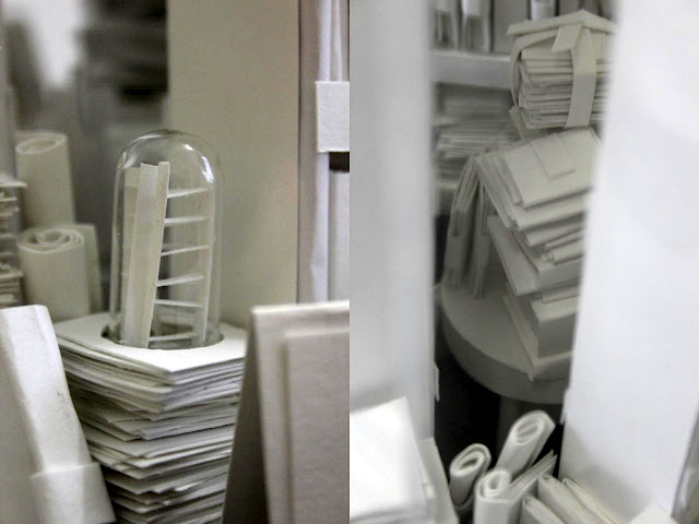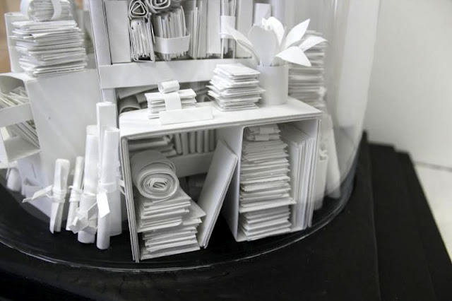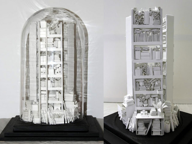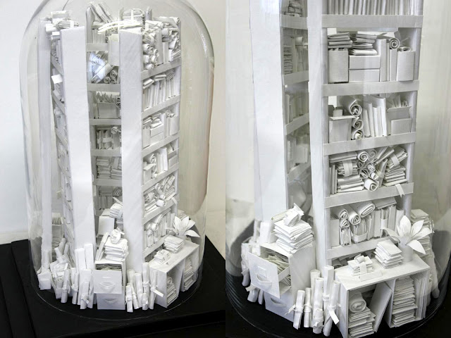 London-based LoveJordan is the collaborative artistic endeavor of Jonny Love and Samuel Jordan. They produce a diverse body of work, including the daunting series titled “Writers Block Library”. This set of glass domes packed with blank notebooks, pads, envelopes, paper, books and files is every writer’s waking nightmare.