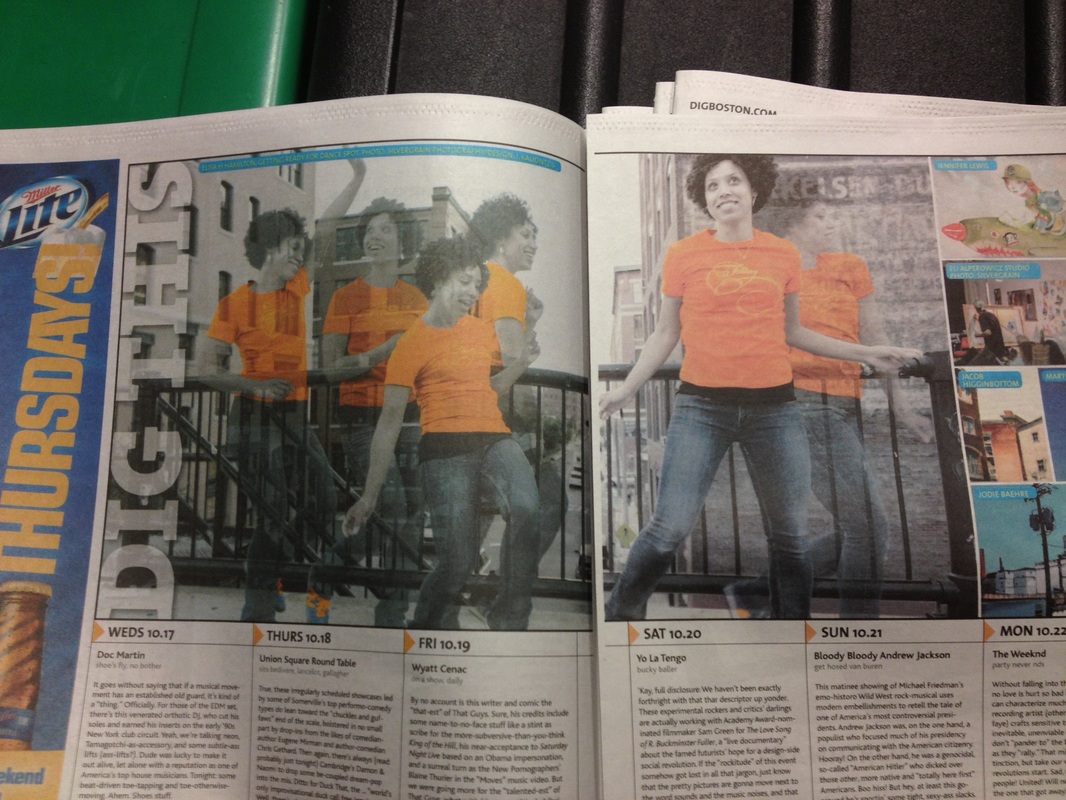 Thanks for the coverage of Dance Spot! A few additions: The artist’s full name is Elisa H. Hamilton, and the photos above, from top to bottom are credited to Elisa H. Hamilton, Sylvia Stagg-Giuliano Photography, Silvergrain Photography/design by Joanne Kaliontzis, and Sylvia Stagg-Giuliano Photography. Newspaper spread shown is Dig Boston.