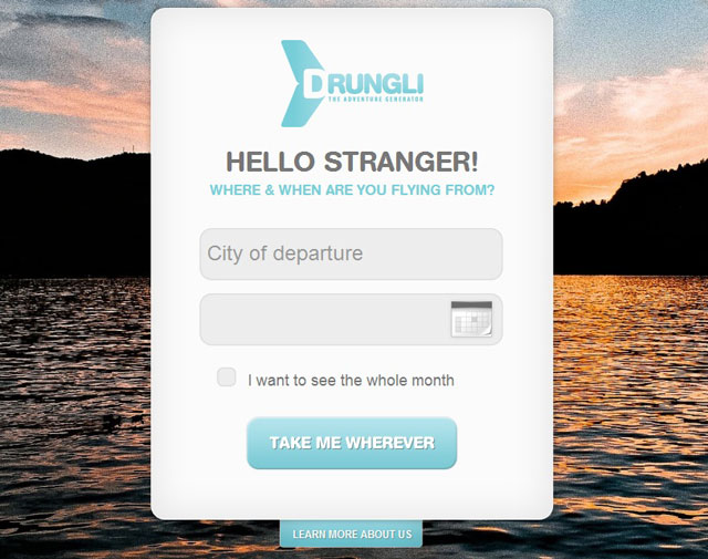 Are you a spontaneous traveler? Would you trust a website to randomly plan your travel? If the answer is yes, you might want to give the oddly named “adventure generator” Drungli a try.