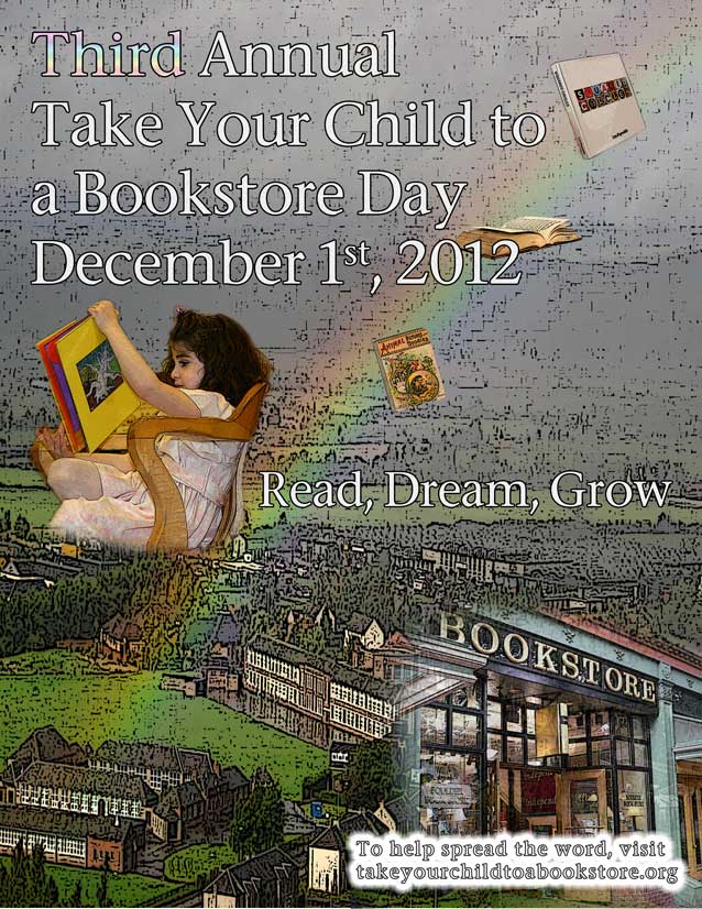 Tomorrow, December 1st, marks the third annual Take Your Child to a Bookstore Day. More than 1,000 bookshops in North America, along with stores in the U.K. and Australia, will be hosting special events to celebrate young readers. Many bookstores will have readings, book giveaways, door prizes, refreshments and more.