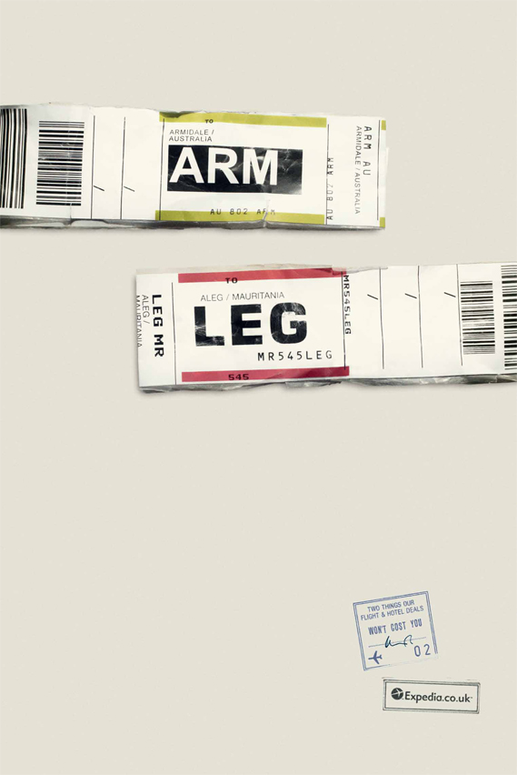 International ad agency Ogilvy & Mather has created this clever campaign for Expedia UK by combining three-letter IATA airport codes to form pithy travel related phrases. Ultimately, they searched 9,000 airport codes to come up with 36 ads. They’ve released 9 ads so far. By the way, the tags are all facsimiles since the real ones contain security coding.