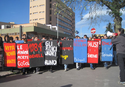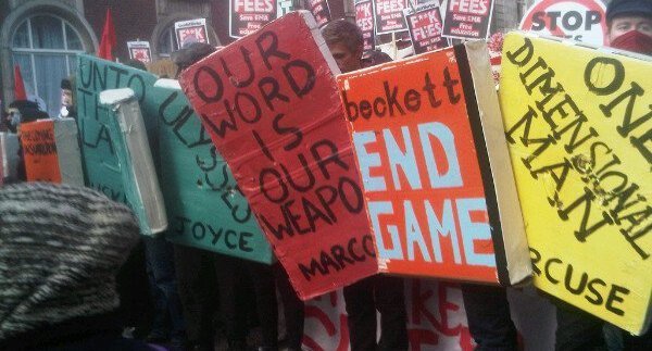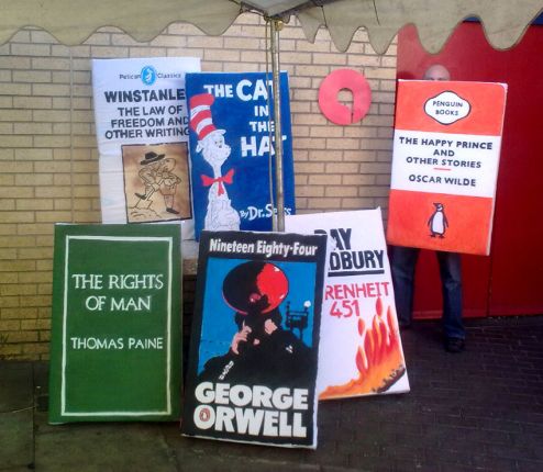 The contemporary use of the book bloc began in Rome in 2010 when students protesting drastic educational funding cuts used oversized, handmade book covers as both shields and political commentary. The concept quickly spread to the UK, the rest of Europe and even to the U.S..