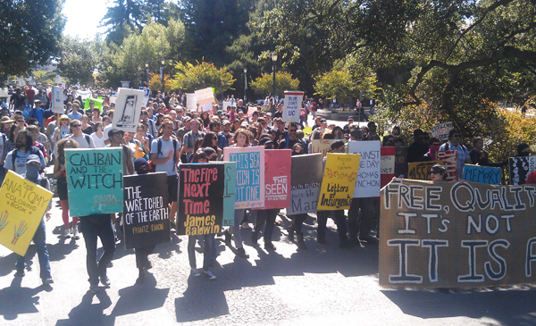 Now, the Interference Archive, in Brooklyn, N.Y., is hosting an exhibtion called Book Bloc !, which features shields created by New York City students from CUNY and Cooper Union. The ehibit, which runs until April 24, focuses on book blocs as a protest tactic and symbolic cultural statements.