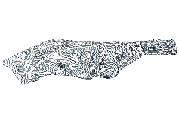 The project resulted in hundreds of maps by “amateur cartographers” and a charming book titled Manhattan A Love Story that compiles 75 of the maps. Cooper’s book, published by Abrams Image, is packed with “accidental autobiographies” that are entertaining and sometimes achingly personal.