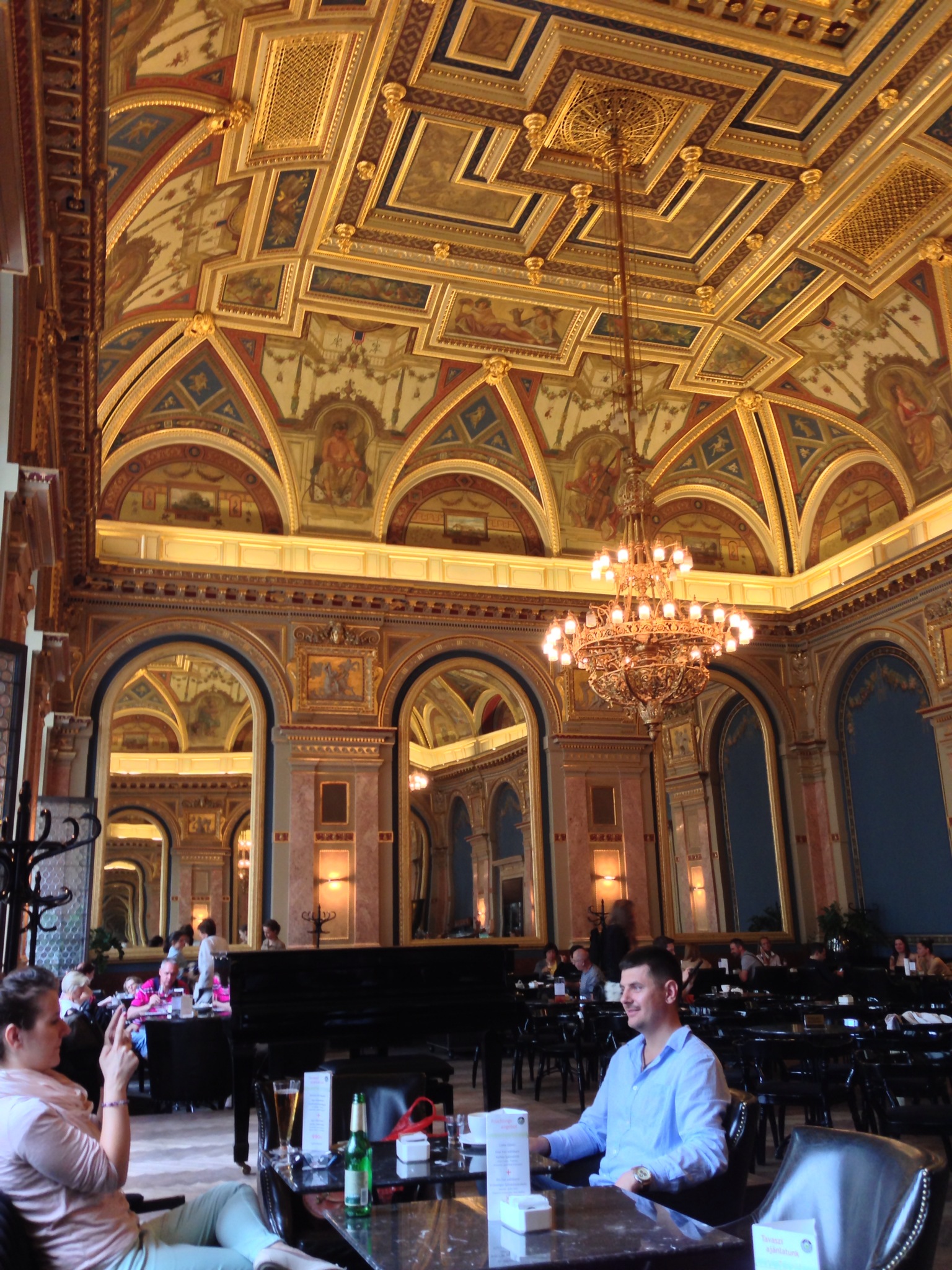 Although the official name is Alexandra Kávézó, everyone just calls Budapest’s palatial Alexandra Bookstore “coffeeshop” the Bookcafe. Even though I have been hearing about the bookstore cafe for the last three years, I was not prepared for the gobsmacking grandeur of the venue. And the bookstore itself is awesome.