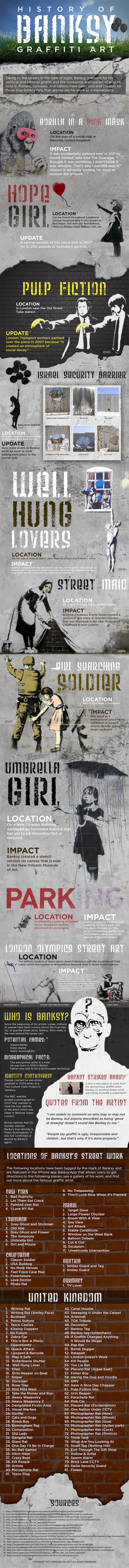 If you are interested in street art, then you’ll want to see this neat infographic created by the folks at Canvas Elite, an online “art” seller. The graphic highlights the career of the elusive banksy from 2001 until 2012, with notes on original geographic placement and commentary on important paintings. But it doesn’t answer the question: Who is Banksy