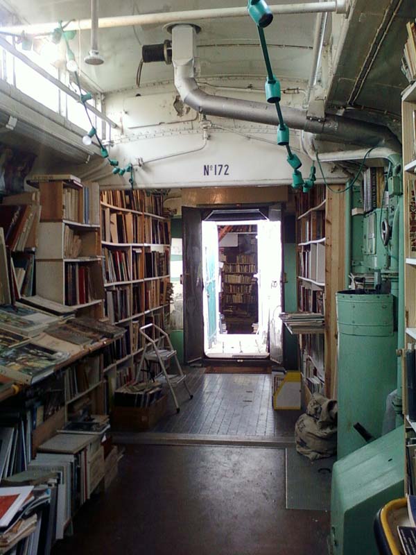 In my ongoing obsession to visit or document every quirky secondhand bookshop, I offer you La Caverne aux Livres in the suburban Paris town of Auvers-sur-Oise. Located next to the town’s railway station, this terrific little bookstore occupies a repurposed 19th century train repair building and two decommissioned 19th century postal rail carriages. The shop has an eclectic collection of used titles. And as you would expect in a town with such strong Van Gogh connections—he’s even buried here—there are a wide variety of art books to choose from.