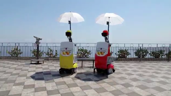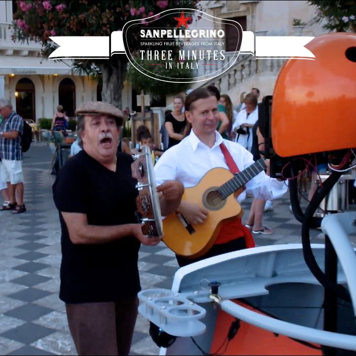 San Pellegrino has built robots that explore the town of Taormina in real-time and stream live video broadcasts from the town. The five robo-tour guides drive around and interact with locals and tourists, while a skybot provides scenic views from above.