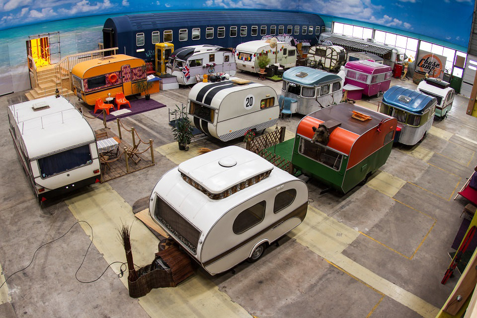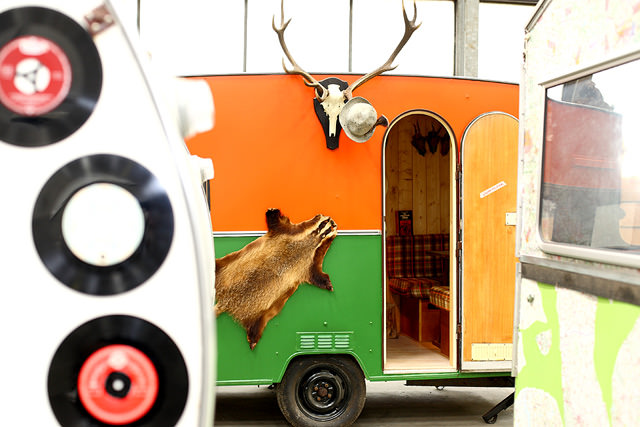 Situated in a former industrial warehouse building, Bonn Germany’s BaseCamp Young Hostel is a very clever campground with a twist. The hostel consists of a group of rehabbed, quirky, vintage camping trailers and rail cars. The units are arranged in a circle to recreate that old campground vibe and to encourage camper camaraderie. The trailers each sports a unique theme and décor, with names like Space Shuttle, Drag Queen, Safari & Flower Power.
