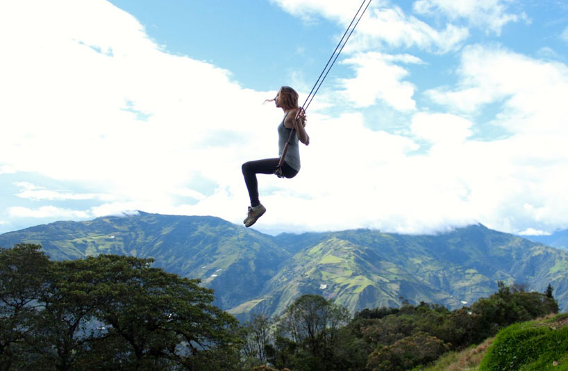 Overlooking the Tungurahua volcano near Banos de Agua Santa, about 90 miles from Quito, Ecuador, the “swing at the end of the world” is a tempting adventure for thrill seeking travelers, but not for me. Tethered to a rickety-looking wooden treehouse, the swing offers a breathtaking aerial panorama at more than 2,600 meters. By the way, Tungurahua, which means “throat of fire” in Quechua, last erupted in early November.