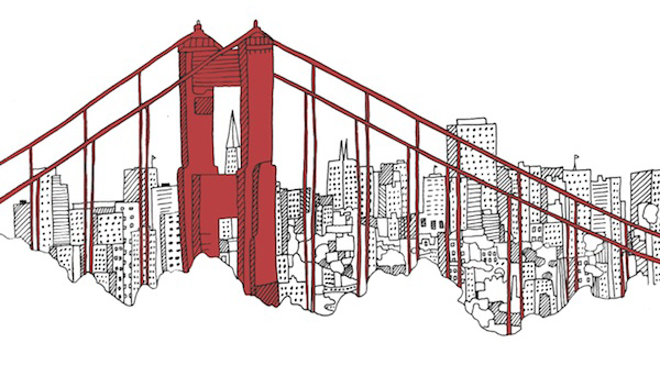 Launched just about a year ago, Wildsam Field Guides travel series just released its new San Francisco edition. Joining Nashville and Austin editions, this terrific travel guidebook is rich in local lore, city heritage, wonderful illustrations—like artist Lisa Congdon‘s Golden Gate above—and marvelous hand-drawn maps.
