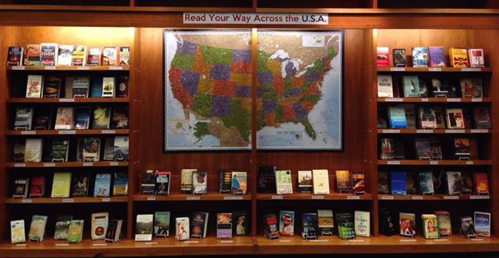 Celebrating its 120th anniversary this year, Vroman’s in Pasadena is Southern California’s oldest and largest independent bookstore. The popular bookshop recently installed a clever display called “Read your way across the USA”. The shelf display presents books that are set in each of the fifty states. Check out Vroman’s blog to peruse the current choices. And if you’d like to make your own suggestions for inclusion, add a comment.