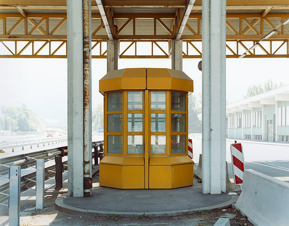 Düsseldorf-based, Polish-born photographer Josef Schultz traveled throughout Europe for years documenting abandoned passport control points, border posts and military check points. In his resulting series “Übergang”, Schultz digitally manipulated the landscape by removing commercial signage and by subtly blurring the background to isolate the sites from their original context.